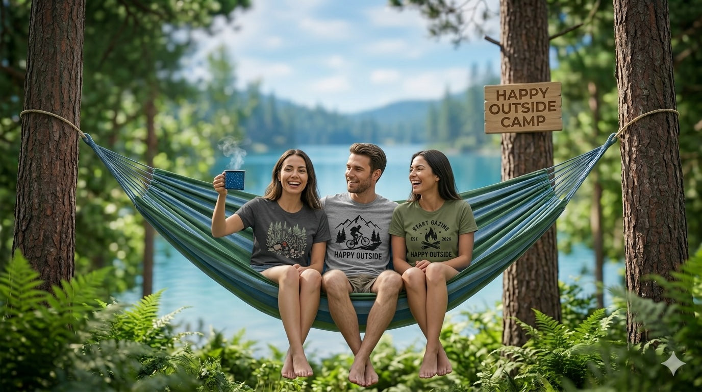 At Happy Outside, we design our tees with comfort and adventure in mind—using high-quality materials that are soft enough to relax in, yet durable enough to keep up with every outdoor moment. Each piece is made to feel great on the skin while standing up to everyday wear. Materials may vary by item, and you can always find the exact details on each product page.
